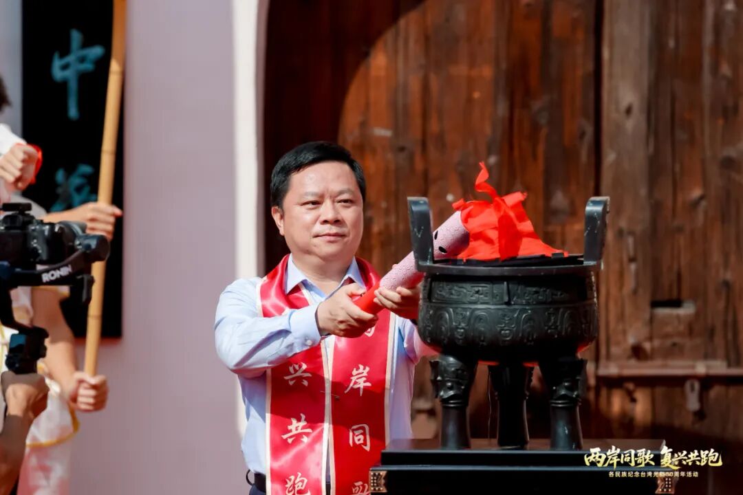 共燃复兴之火环节中,在福建省民族团结进步协会宋哩会长的领读下,领导与两岸各民族代表共同宣读民族复兴同心宣言,铿锵誓言彰显携手振兴中华的坚定信念;随后,福建省民宗厅厅长兰明尚点燃复兴之火,火焰升腾间,凝聚起两岸同胞共促民族复兴的磅礴力量。核心环节“复兴共跑”中,80名两岸各民族代表并肩奔跑,步伐铿锵踏出同心同向的节奏,传递着中华民族的精神底色。